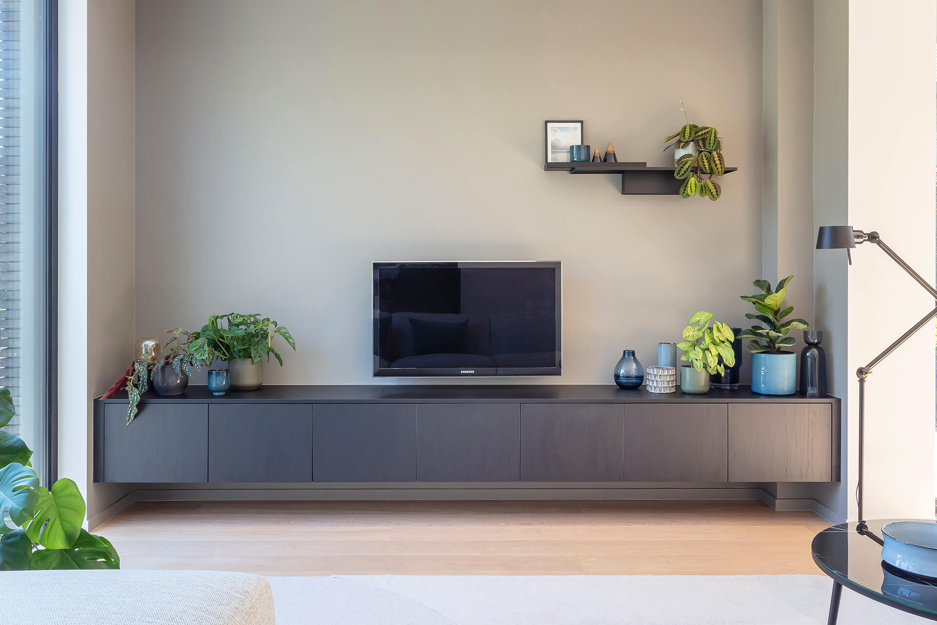 The ideal height of a TV unit: the top of the unit should be 50 to 60 cm high. It’s best to fix a floating TV unit around 20-30 cm above the floor.