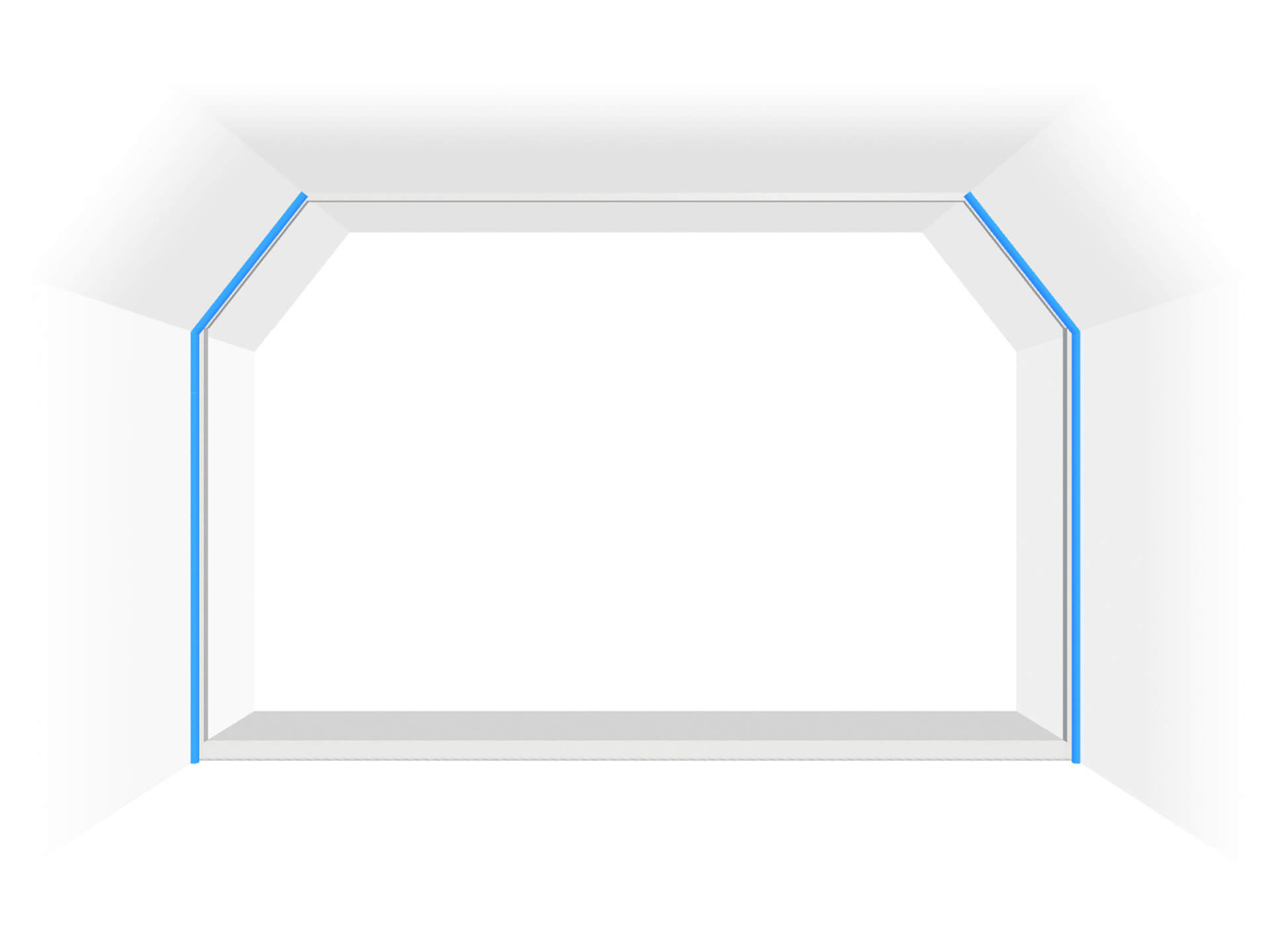 Measure the height of the left or right side. That is the distance from the floor to the start of the slope. Then measure the width of the ceiling without the sloping corner. That is the width of the flat section of the ceiling.