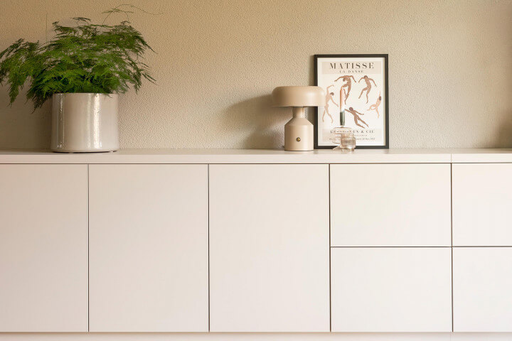 The customer had a clear idea for the layout but wanted to ensure everything would fit perfectly. So, they invited a Maatkasten Online expert. The specialist confirmed the idea, took precise measurements, and brought color samples and handles. This made choosing and deciding easy and worry-free. The expert then designed all the custom closets, and the customer received the 3D designs ready to order. Convenient!