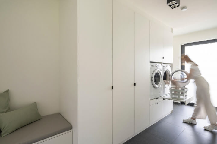 Still looking for a custom desk, TV unit, wardrobe, stair cupboard, laundry cabinet, ...? Design the cabinet of your dreams with our handy design tool. Discover all possible layouts, finishes, and handles with just a few clicks.